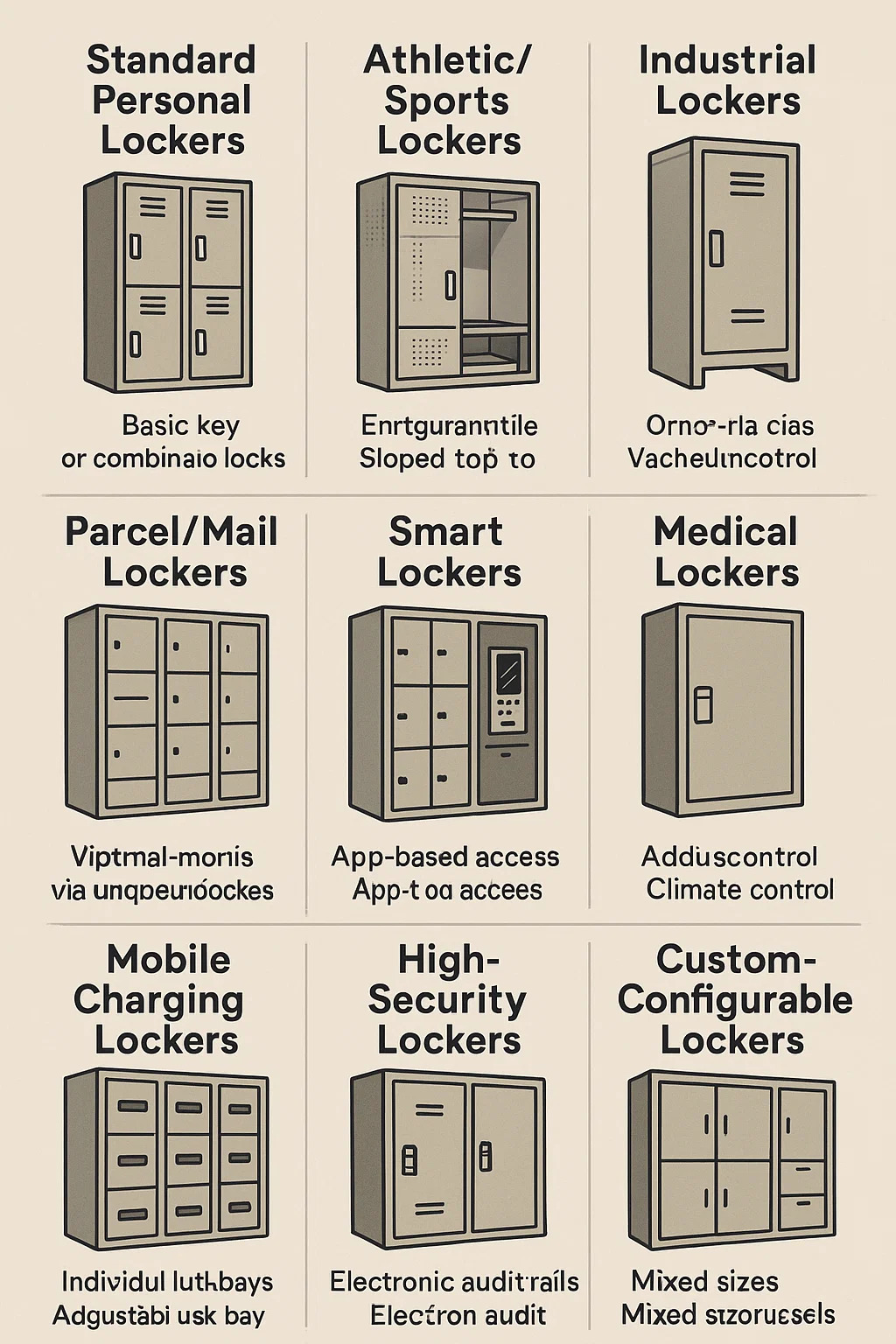 Шкафчики классифицируются по дизайну, функциям и контексту развертывания. Ниже приведена разбивка распространенных типов: